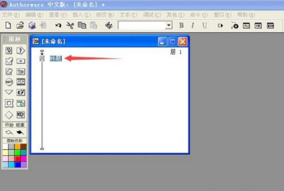 2、双击authorware显示图标旁边的文本框,进行重命名,例如,这里改为“标题”,这样方便课件阅读时更清晰。