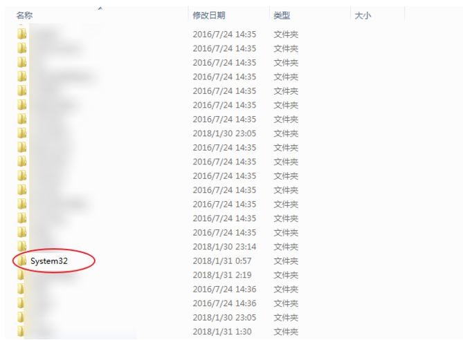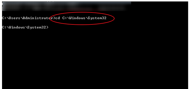 进入命令提示符窗口,如图,输入cd C:\\Windows\\System32(要注意空格),回车,