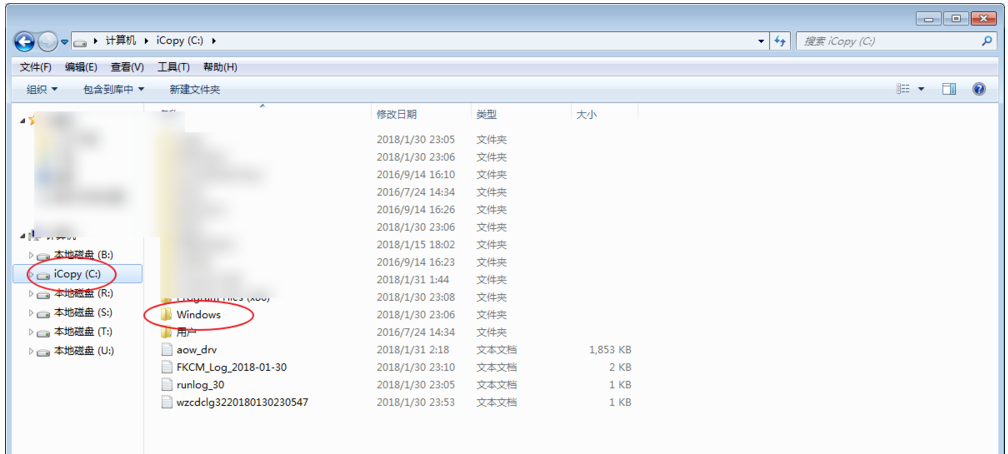 然后双击计算机图标,进入以下界面,点击左侧的C盘,打开Windows文件夹,如图,