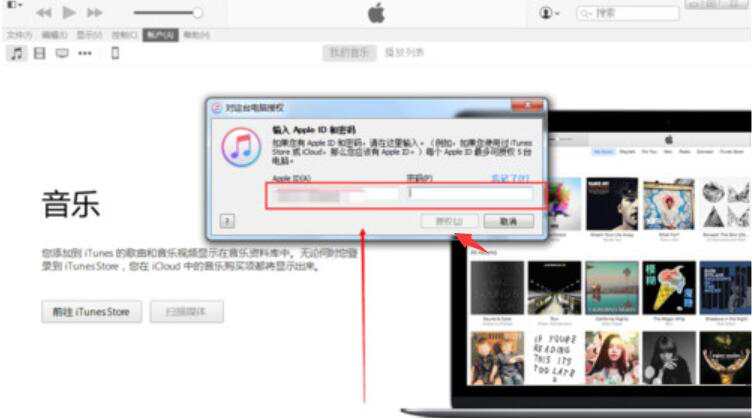 4、在弹出的“对这台电脑授权”的对话框中,自行输入Apple ID和密码,再点击下方的“授权”按钮。