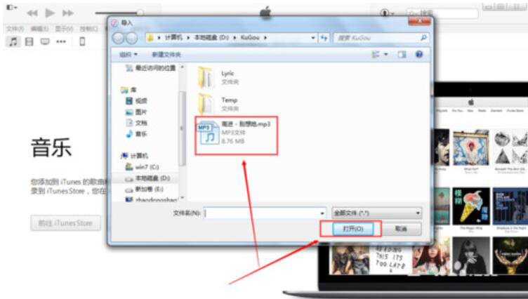 6、从播放列表中,将需要同步到手机上的歌曲导入到itunes的资料库中。