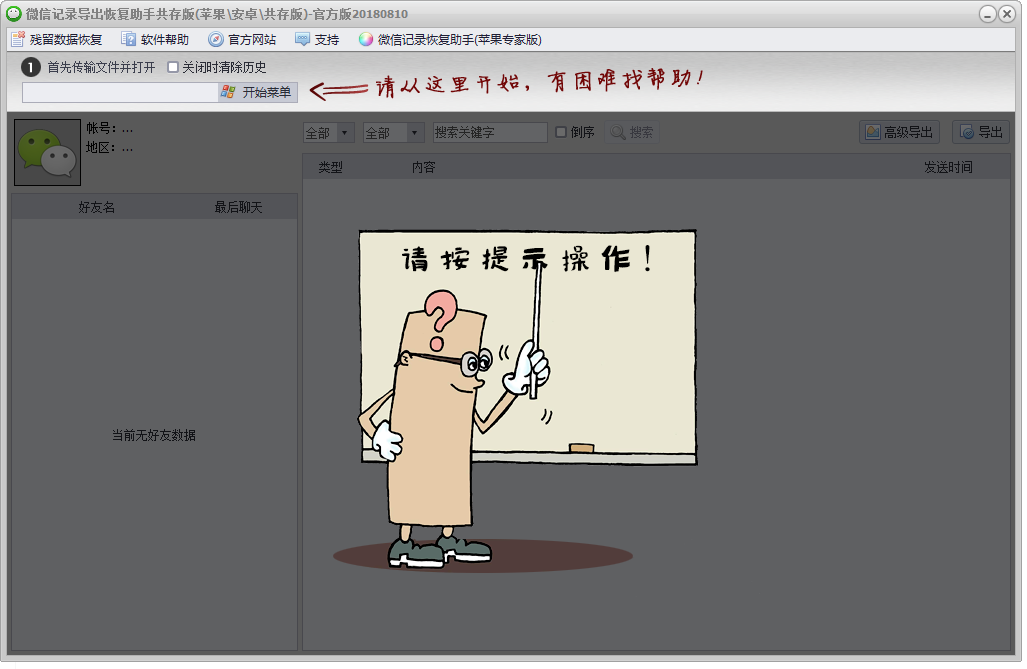 微信管理大师,一看名字,我们就能大概知道软件的作用,这是一款专业免费的微信数据管理软件,有了它,你就可以在电脑上管理手机微信,例如备份、导出聊天记录(语音、视频、图片等);另外,它还可以帮助找回删除的聊天记录。