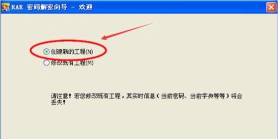 1、可以在本站下载RAR Password Cracker,安装后运行。在RAR密码解密向导中,选中“创建新的工程”,从而进入破解rar密码的下一步操作。