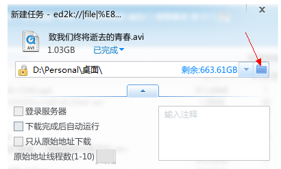 这时弹出迅雷新建任务窗口,如图,点击文件夹图标,