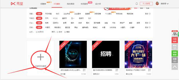 4、成功登录后,在秀堂的主页面中,用户先要点击“+ 创建空白画册”。