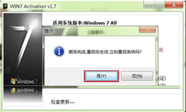 3、激活完成后会弹出“提示”界面,点击“是”即可,接下来电脑会重启,重启后就可以电脑系统激活了,如下图: