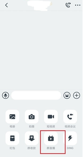 1、打开手机钉钉,进入界面,随便点击一个群组,如图,点击【+】,弹出菜单,选择【群直播】功能,