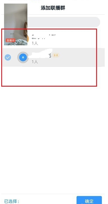 4、选择需要添加的联播群,添加完成,点击确定,即可同时在几个群进行直播,