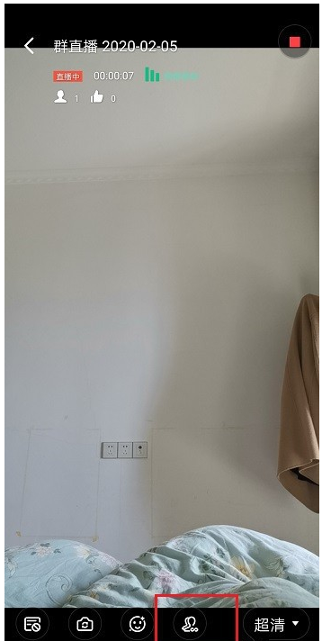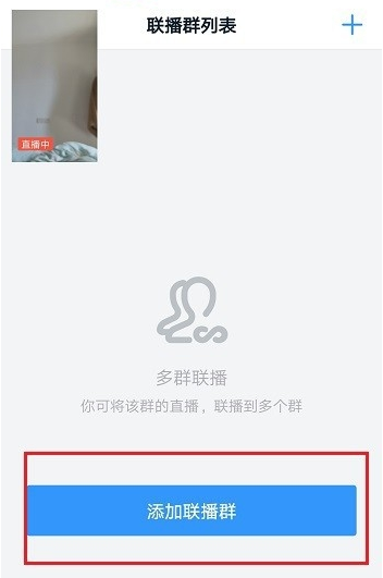 3、进入直播界面,现在即可进行群直播,如果需要进行多群同时直播,点击下方的头像图标,接着点击【添加联播群】,勾选更多群聊,