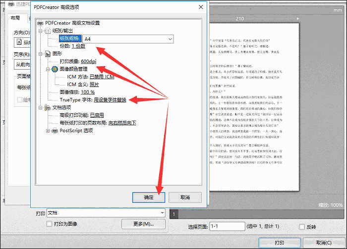 进入高级设置页面,你可以设置纸张规格、打印质量,还可以替换原有字体,设置完成,点击确定即可,