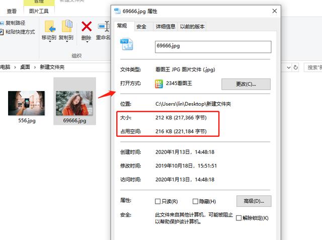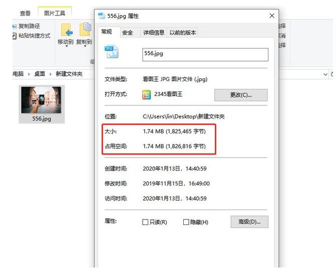 完成上述操作,设置另存为图片,导出图片,鼠标右击图片,选择【属性】,如图,你会发现图片体积变小了。