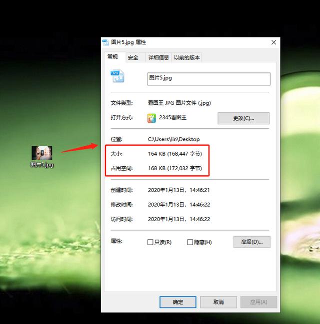 完成上述操作之后,可以通过右键另存为图片,将图片保存在桌面,鼠标右击图片,选择【属性】,即可发现图片体积变小了。