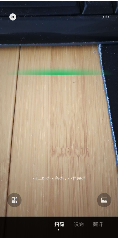 启用扫一扫功能,如图,你可以看到【扫码】、【识物】、【翻译】这三个选项,