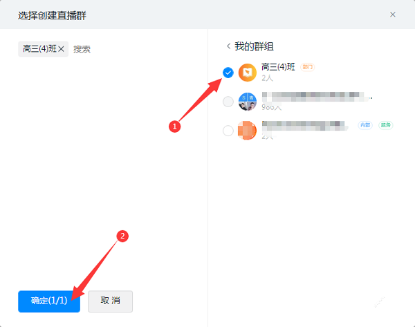 选择需要参加会议的人员,勾选目标联系人,点击确定,