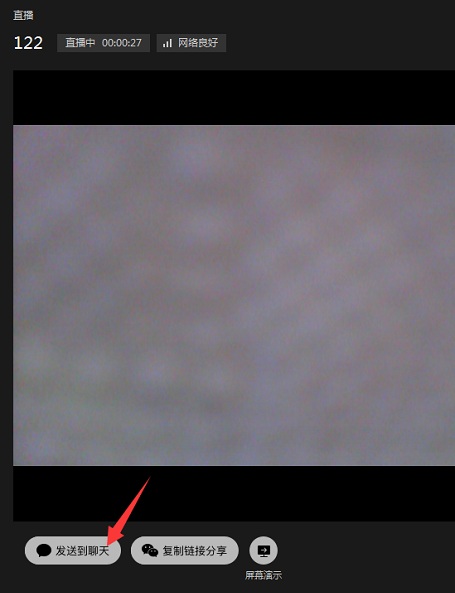 现在开始直播,点击左下角的【发送到聊天】,可以邀请他人观看直播,