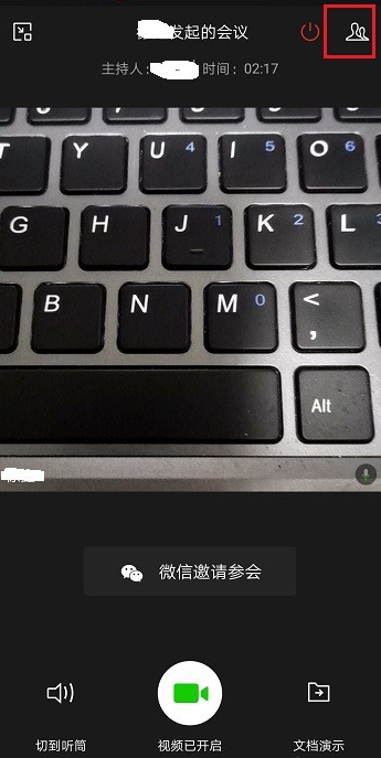 如果你想转让会议主持人,如图,在视频会议窗口中点击右上角的图标,