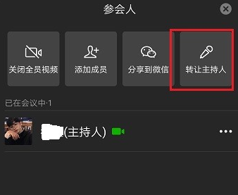 展开面板,点击【转让主持人】,选择其中一个参会成员,即可实现转让。