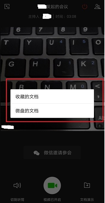 进入视频会议界面,如果需要演示文稿,点击下方的【文档演示】,如图所示,