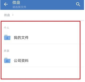 弹出菜单选项,你可以选择【收藏的文档】或者【微盘的文档】,