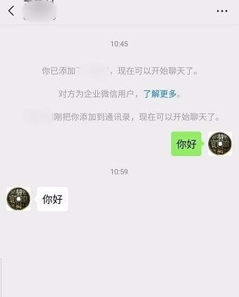 添加成功,即可发送消息,成功实现企业微信和微信的互通。
