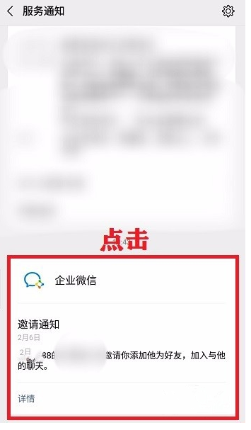 成功发送邀请信息,打开微信,你会收到一条服务通知,点击查看,可以看到邀请通知,