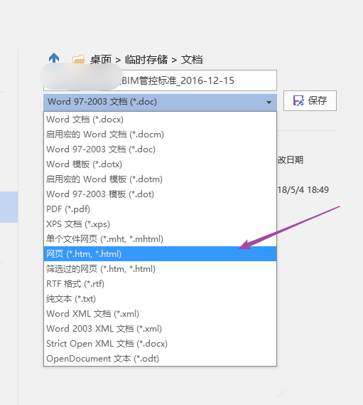 如图,在右侧窗口选择文件输出路径,设置文件类型为【网页】,点击【保存】,