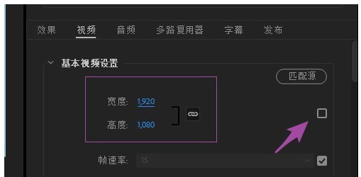 在右侧面板点击查看【基本视频设置】,如果视频剪辑之前即无法显示全屏,点击【匹配源】下方的按钮,
