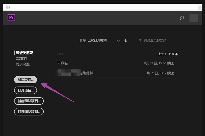 打开premiere软件,进入界面,如图,点击【新建项目】,创建一个剪辑样板,