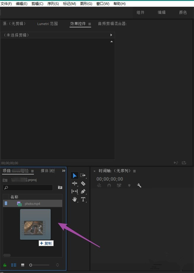 将视频文件拖拽到项目浏览器窗口,导入需要剪辑的视频素材,