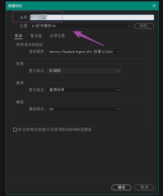 弹出新窗口,如图,设置项目名称,选择文件保存路径,不需要修改其他参数,点击确定,
