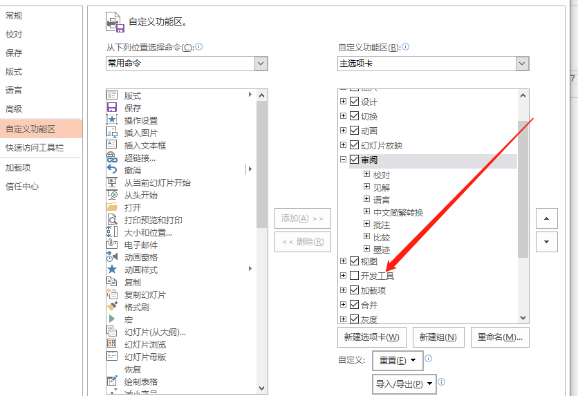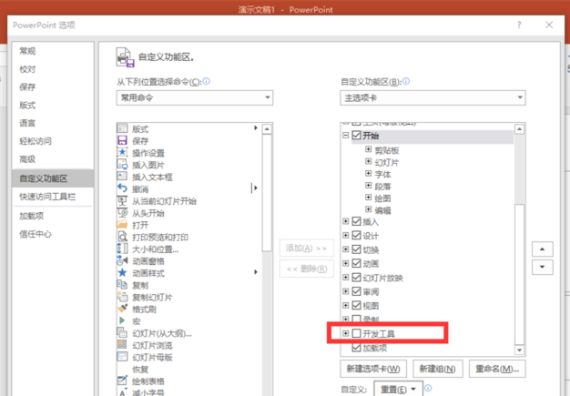 如何在PPT菜单栏添加开发工具选项?