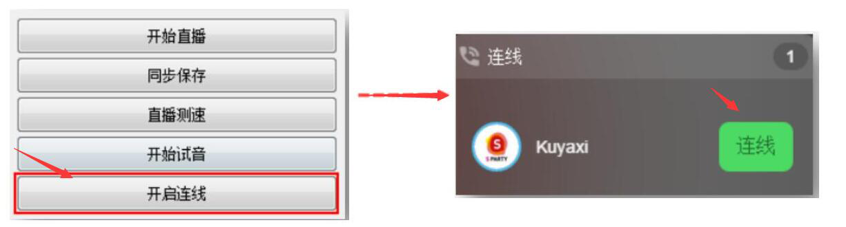 4、试听结束,用户再进行一次连线的调试,点击荔枝直播助手的“开始连线”,在它的右方界面中选择测试的听众进行连线调试。