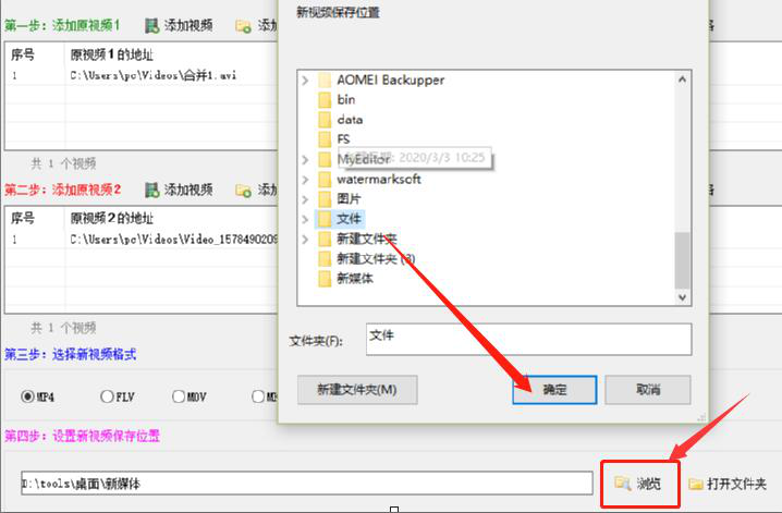 4、输出格式确定后,点击视频剪辑高手界面下方的“浏览”,选择新视频要存放的位置。一般不建议放系统盘,以免影响了电脑系统的运行速度。
