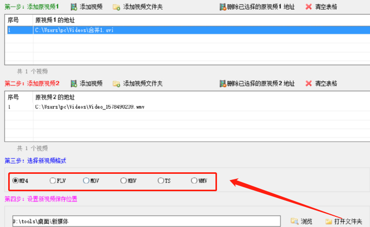 3、要批量合并的视频文件全部导入完成后,用户需要选择新视频的输出格式。一般情况下,我们都会选择通用的MP4格式。