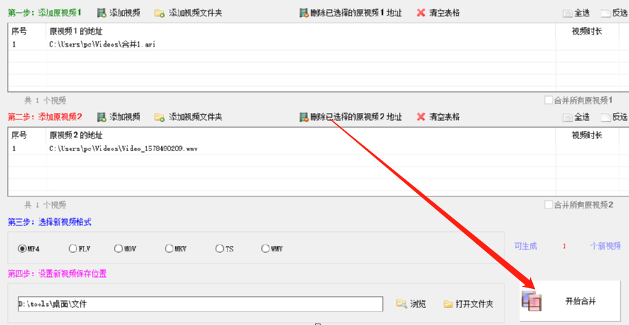 5、最后,在视频剪辑高手中点解右下方的“开始合并”便开始合并视频的操作了。