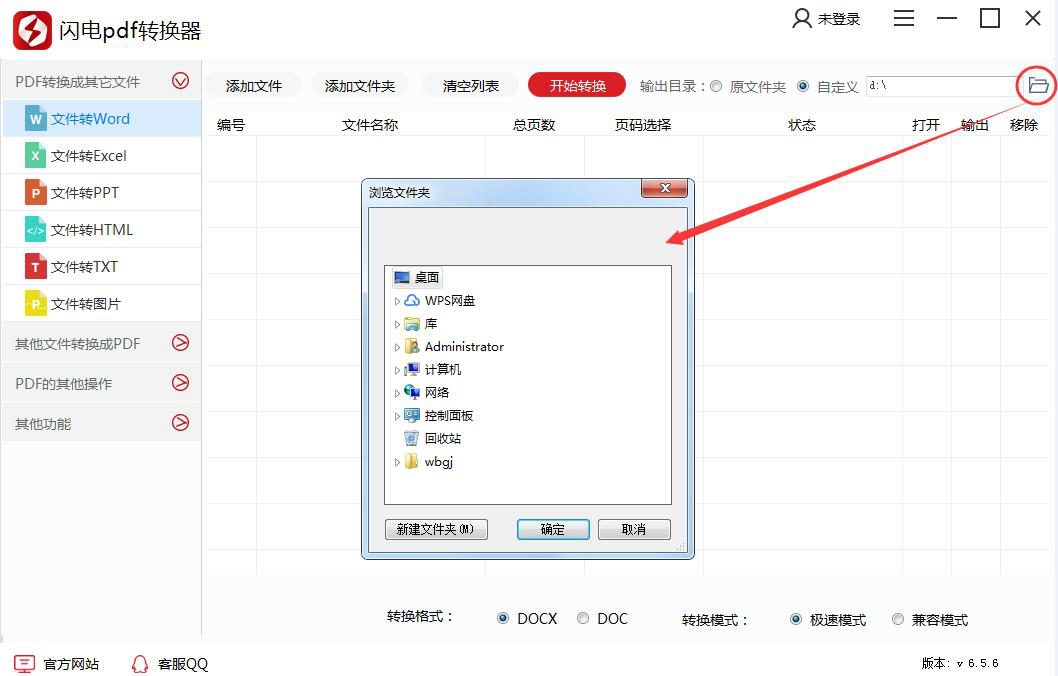 4、在闪电PDF转换器中,还可以自行选择它所输出的文件路径。