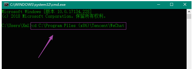 2、如图,复制微信地址信息,在命令提示符窗口中输入【cd+空格+安装目录】,回车,