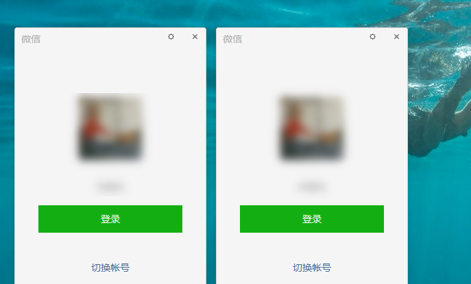 6、双击bat文件,即可弹出两个微信登录窗口(两个窗口是重叠的,用鼠标选中拖开就能看到两个)。