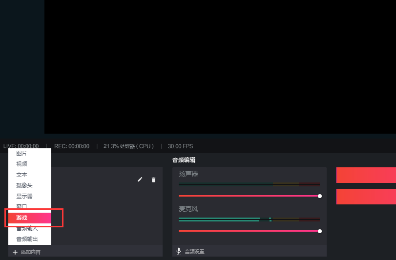接下来我们点击左下角的“添加内容”,点击选择游戏。