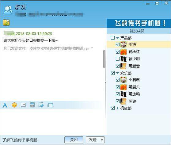 5、飞鸽传书软件除了可以向一个对象传输文件,还可以点击群发,将文件一次性传输给更多的人。