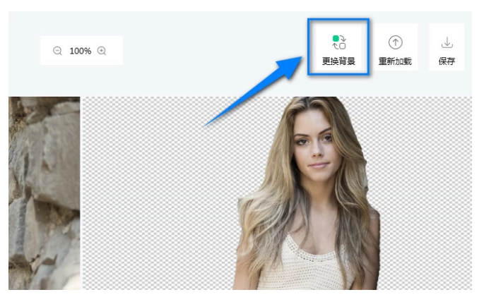 如果你想修改图片背景,等到软件成功去除图片背景,即可点击【更换背景】功能,