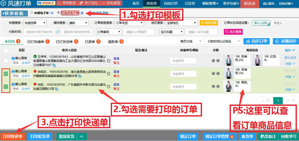 电子面单开通成功和快递单模板设置完成后,就要开始用千牛工作台电脑版打印快递单了。