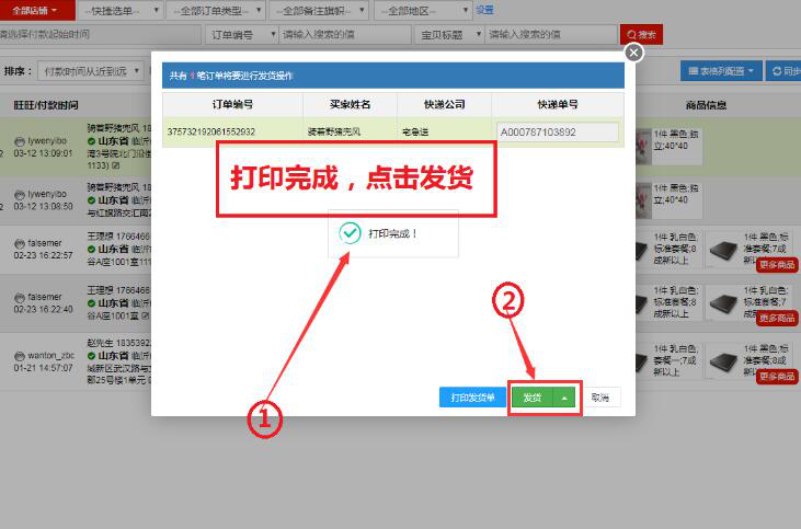 3、当打印完毕后,千牛工作台电脑版会弹出提示的窗口。打印完成后,点击发货即可。