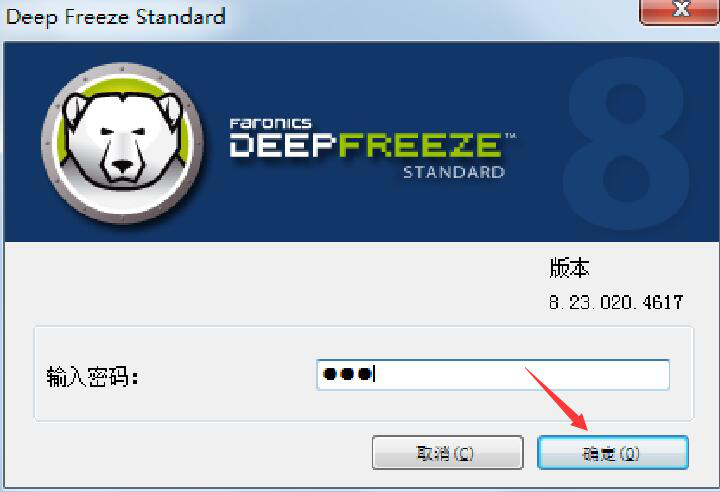 2、然后,冰点还原精灵便会自动弹出密码的窗口。用户需要输入自己安装该软件时设置的密码,之后,点击“确定”按钮便可打开冰点还原精灵界面。