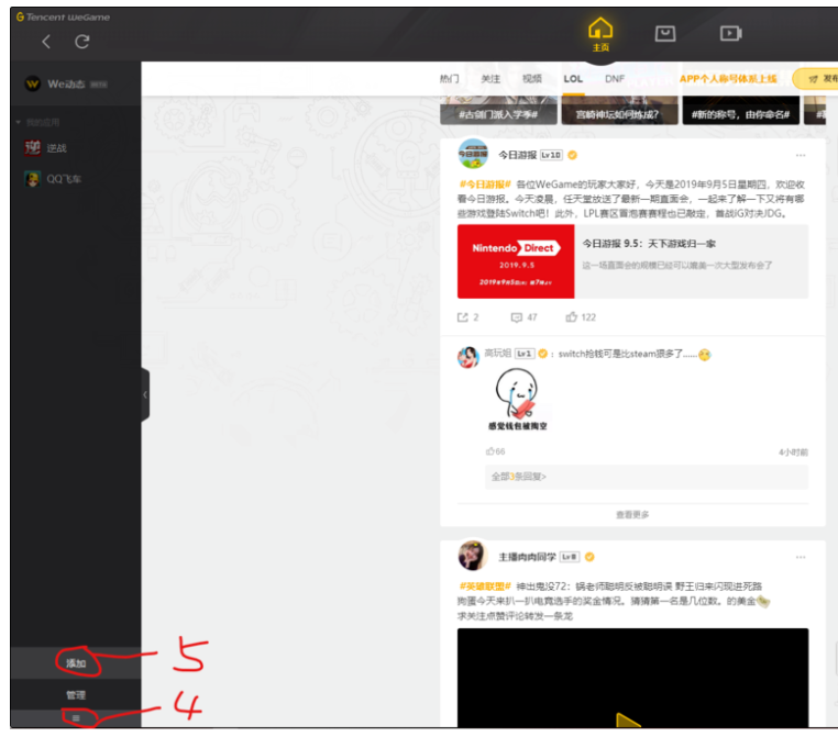 首先打开腾讯WeGame游戏平台,进入界面,如图,点击上方的图标,左侧面板即会显示你电脑上的一些游戏,