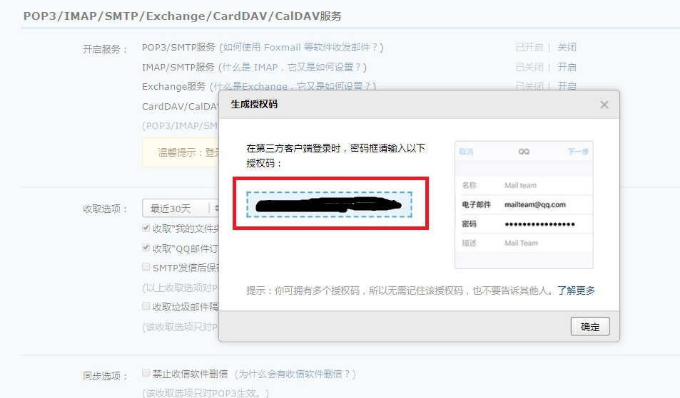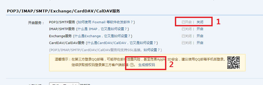 3、在【POP3/SMTP服务】右侧点击【开启】。然后点击【生成授权码】。