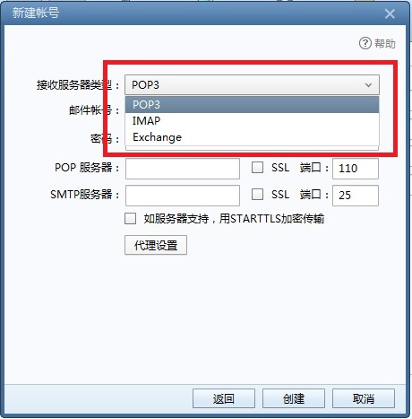 8、在新建账号弹窗里选择服务器类型【POP3】。(此服务器类型与邮箱开启的服务对应)。