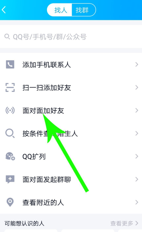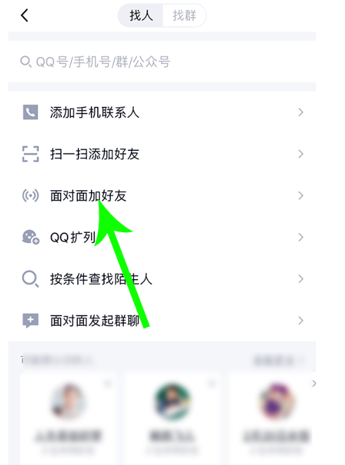 进去找人界面,如图,点击【面对面加好友】,