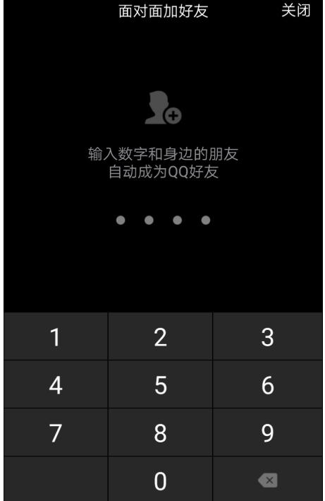 打开面对面加好友窗口,随意输入四位数字,输入完成,系统即可自动匹配好友,