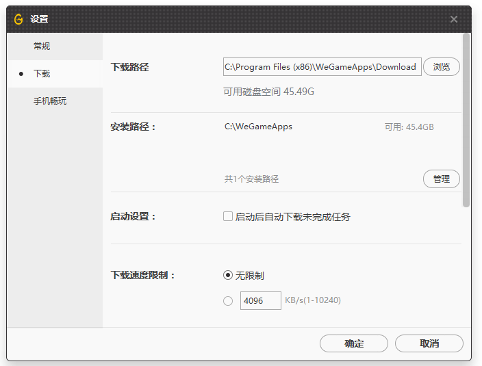 进入设置窗口,点击【下载】选项,对【下载速度限制】进行调整,勾选【无限制】,